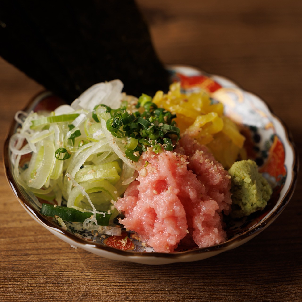 おつまみトロたく / 580円 商品名:おつまみトロたく値段:580円(税込638円商品カテゴリー:海鮮料理簡単な説明:『刻んだマグロと国産たくあんにイクラを贅沢にのせ、海苔で包んで頬張る一品。たくあんの歯ごたえとイクラの旨みが絶妙にマッチし、日本酒や焼酎との相性も抜群です。』 次の記事